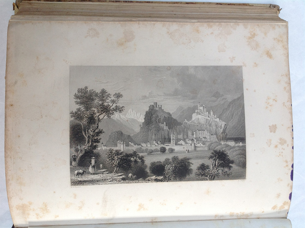 LA FARINA, Giuseppe. La Svizzera istorica ed artistica. Firenze: Luigi Bardi, 1842. 2 volumi in 4to con numerose tavole raffiguranti veduta della Svizzera e dei suoi abitanti (fioriture e 2 pagine rincollate con nastro adesivo). Legatura in mezza pelle.