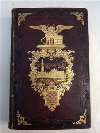 GALIBERT, Leone. Histoire de la Republique de Venise. Parigi: Furne, 1847. Volume in 4to con marchio tipografico dell'editore al frontespizio. Numerosi disegni raffiguranti vedute e palazzi della città veneta. Carta ripiegata in antiporta (fioriture e bruniture). Legatura in piena pelle con disegni in oro con veduta della piazza S. Marco. Taglio di colore oro.