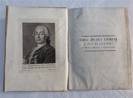 Supplemento alla serie dei trecento elogi e ritratti degli uomini i più illustri in pittura, scultura e architettura o sia abecedario pittorico dall'origine delle belle arti a tutto l'anno 1775. Firenze: Allegrini e Pisoni, 1776. Volume in 4to. Marchio tipografico dell'editore al frontespizio e incisione del ritratto del cavaliere Ferdinando Fuga, cui il libro è dedicato, nella pagina che precede l'occhiello. Testo su 2 colonne. Legatura originale in cartone rustico.