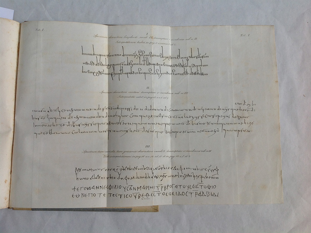 Regi neapolitani archivi monumenta edita ac illustrata. Napoli: 1845-47. 2 volumi in 4to con tavole fuori testo ripiegate (fioriture). Legatura in mezza pergamena.