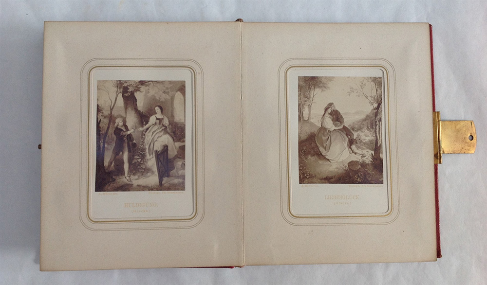 KAULHARH WILLHELM. Schiller gallerie. Monaco: Bruckman Verlag. Volume in 8vo. Raccolta di 22 fotografie antiche, montate in un album editoriale. Legatura in tutto zigrino con fregi in oro e medaglione metallico al centro dei piatti con fermaglio metallico dorato. Taglio di colore oro.