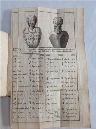 De inscriptione Aegyptica Taurini inventa. Roma: Tagliarini, 1761. Volume in 8vo con marchio tipografico dell'editore al frontespizio. Tavola incisa ripiegata. Legatura in piena pergamena dell'epoca. Taglio di colore rosso a spruzzo (macchie).
