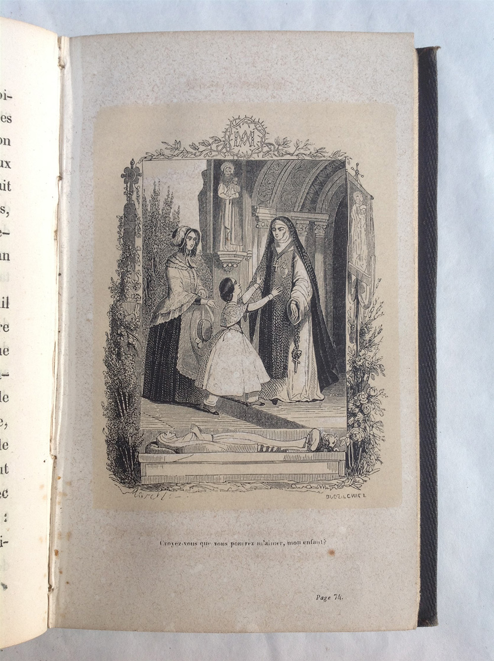 DE GRUNE, M. Le chateau et la ciaumiere. Parigi: Lehuby, 1850 ca. Volume in 8vo con tavola al frontespizio. Figure fuori testo (fioriture). Legatura romantica del tempo in tela e oro.