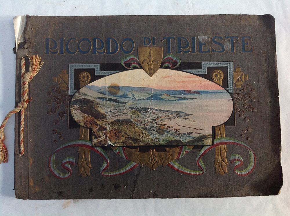 Ricordo di Trieste. Album in 4to oblungo con titolo e fotografie dell'epoca e una veduta panoramica della città in copertina a colori (fioriture).