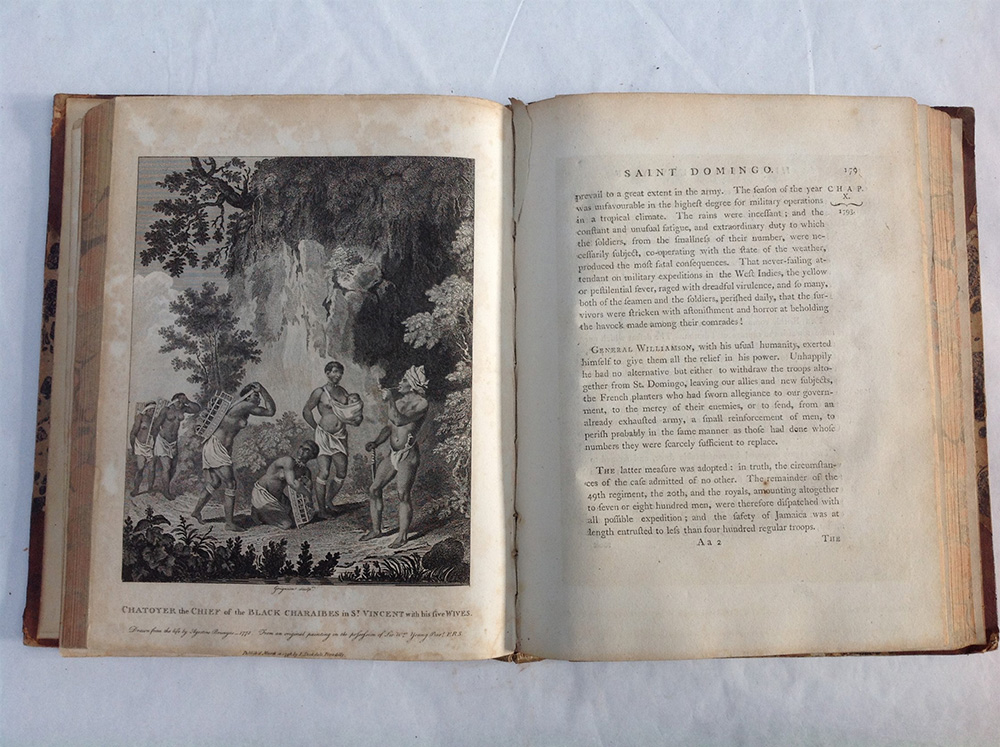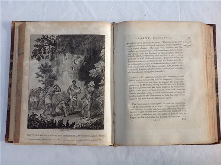 BRAYAN, Edoardo. An historical survey of the island of saint Domingo together with an account of the maroon negroes in the Island of Jamaica; and a history of the war in the west Indies, in 1793 and 1794. Londra: John Stockdale, 1801. Volume in 4to con ritratto dell'autore all'antiporta. Carte geografiche e tavole (fioriture e bruniture). Legatura in mezza pelle (difetti).