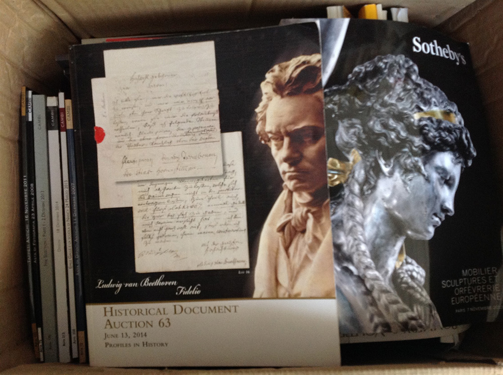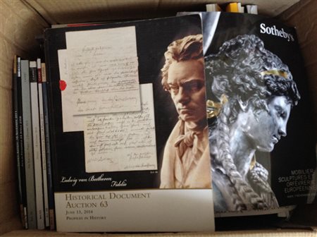 Lotto composto da decine di cataloghi d'asta concernenti libri, stampe e antiquariato. In cartone.