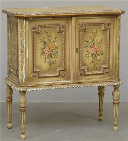 Mobiletto a due ante in legno laccato e decorato a fiori in policromia (cm...
