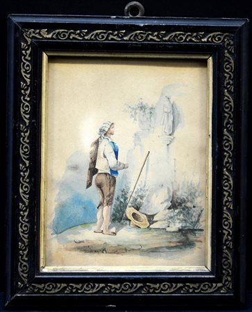 Ignoto "La preghiera" acquerello su carta (cm 14x11) in cornice