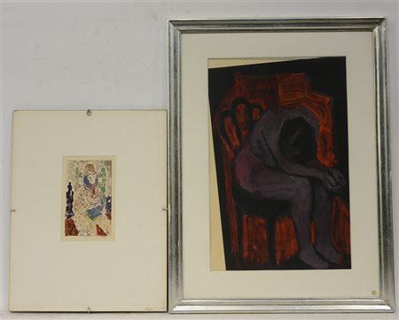 Gianni Vagnetti (Firenze 1897 - 1956) "Nudo viola" (1950) tempera su carta (cm 48x32) e "Ragazza" (1950) monotipo (cm 17x10) Al retro: timbro della Galleria d'Arte Sant'Ambrogio. Bibliografia: Luigi Cavallo "Gianni Vagnetti" 1975 TAV CCXVII fig 49 e TAV CCXXX fig 50. In cornici
