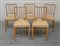 Gruppo di cinque sedie moderne in legno chiaro con schienale a listelli torniti (difetti)