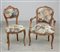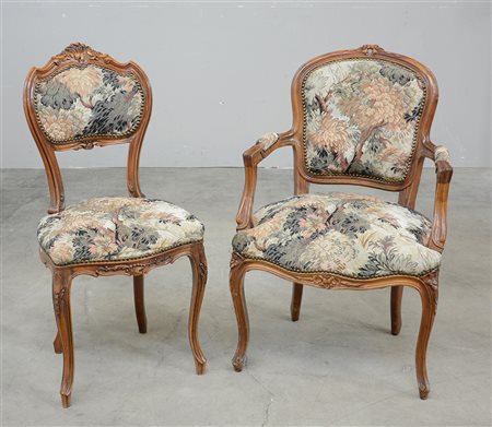 Lotto composto da una poltroncina con schienale e braccioli sagomati e una sedia anloga