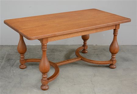 Tavolino da salotto rettangolare con gambe tornite riunite da traversa...