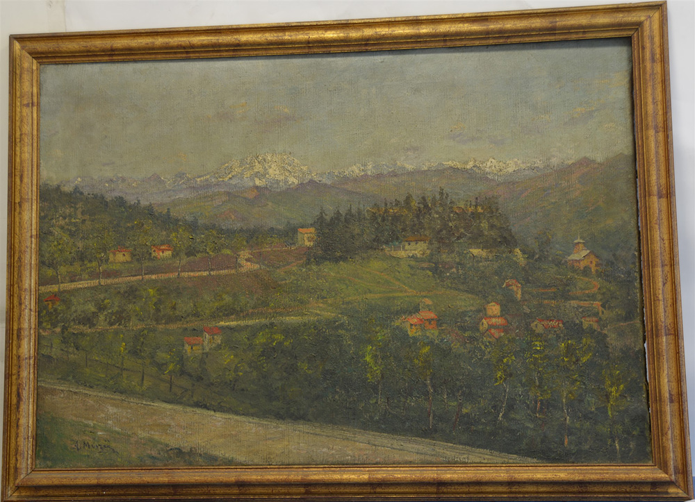 Ignoto "Paesaggio" olio su tela (cm 80x114) reca firma A. Muzzi in basso a sinistra, in cornice (difetti)