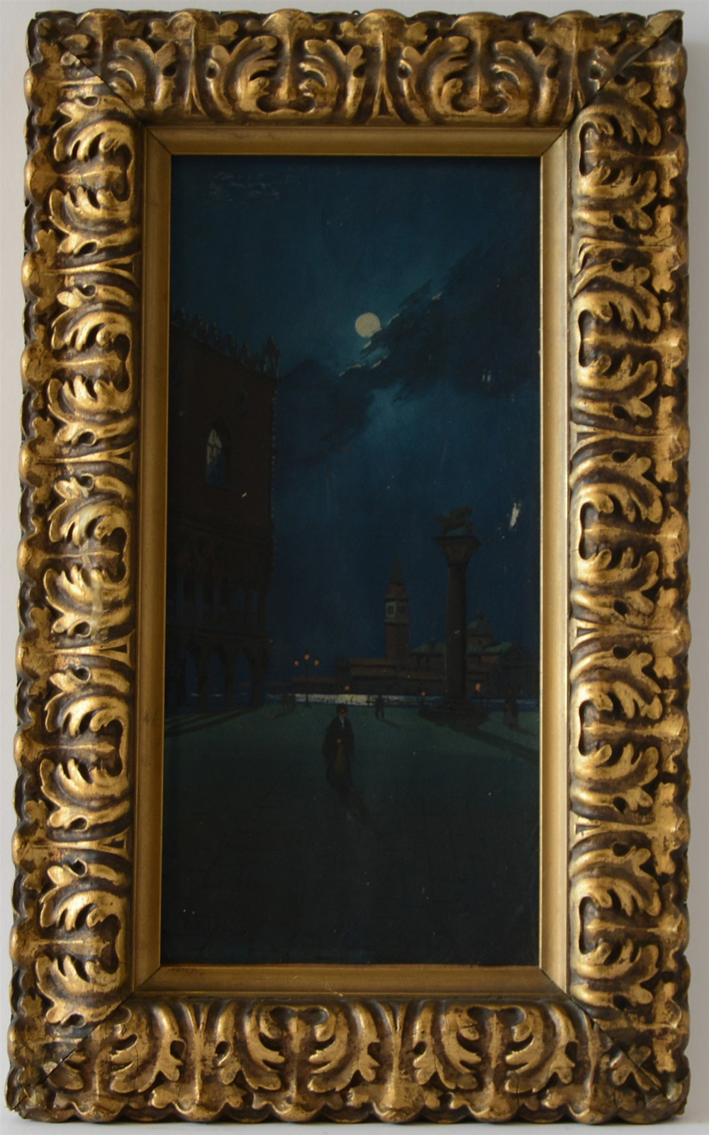 Ignoto "Scorcio di Venezia al chiaro di luna" olio su cartoncino (cm 33x15) In cornice