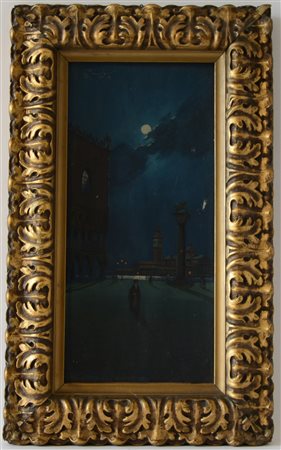 Ignoto "Scorcio di Venezia al chiaro di luna" olio su cartoncino (cm 33x15)...