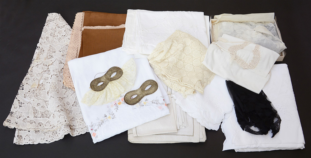 Lotto di tovaglie e scialli in pizzo e ricami. Anni '50 (difetti)
