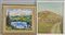 Lotto di due dipinti, su tela e lamiera, raffiguranti un paesaggio collinare...