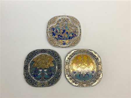 Manifattura di Rosenthal, lotto di tre piatti natalizi in vetro decorati in...