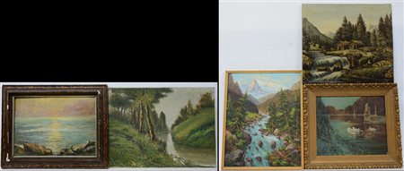 Autori vari. Lotto di cinque dipinti raffiguranti paesaggi