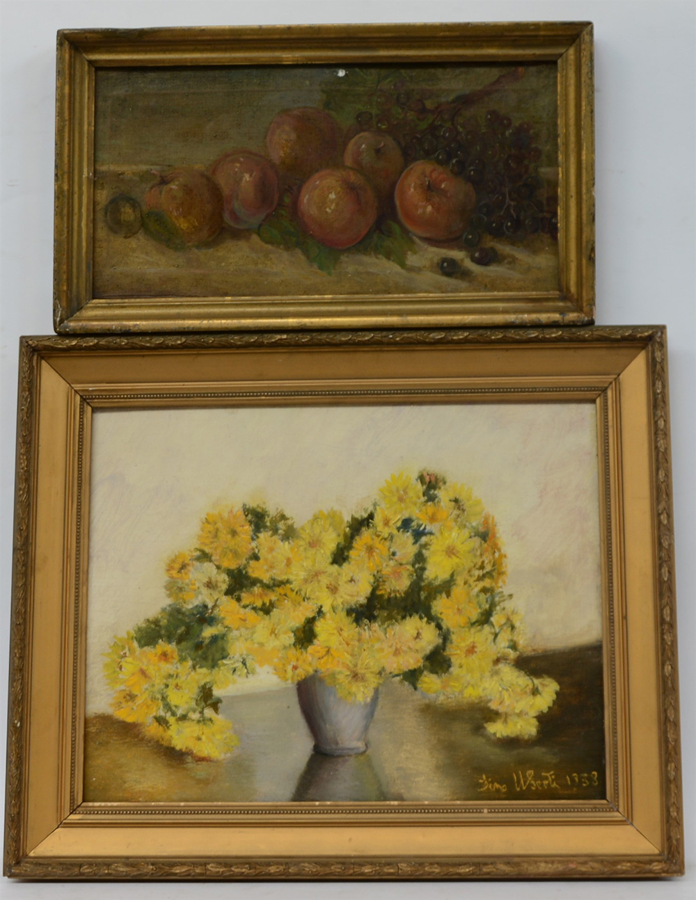 Lotto di due dipinti raffiguranti "Composizione con fiori" e "Natura morta"