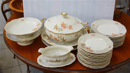 Manifattura tedesca, servizio da tavola in porcellana decorata a fiori su...