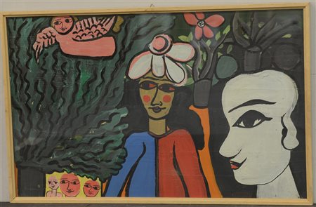 Candida Bissoni (Roncoferrato (MN) 1936) "Senza titolo" olio su tavola (cm 39x62), in cornice (difetti)