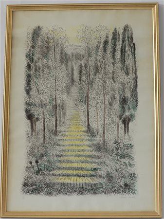 Michele Cascella (Ortona 1892 - Milano 1989) "Strada alberata" litografia (cm...