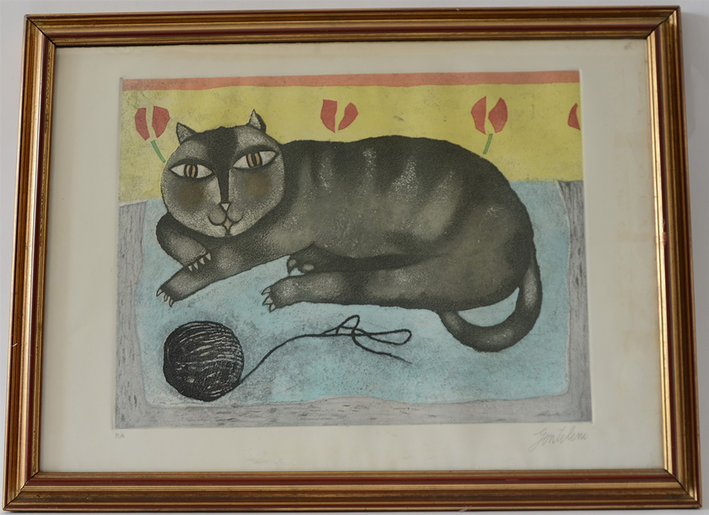 Franco Gentilini (Faenza 1909 - Roma 1981) "Gatto" acquaforte/acquatinta - prova d'artista (battuta cm 41x53,5; foglio cm 50x70) Firmata in basso a destra a matita, in cornice (lievi difetti).