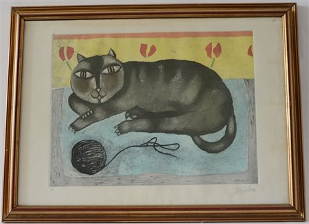 Franco Gentilini (Faenza 1909 - Roma 1981) "Gatto" acquaforte/acquatinta -...
