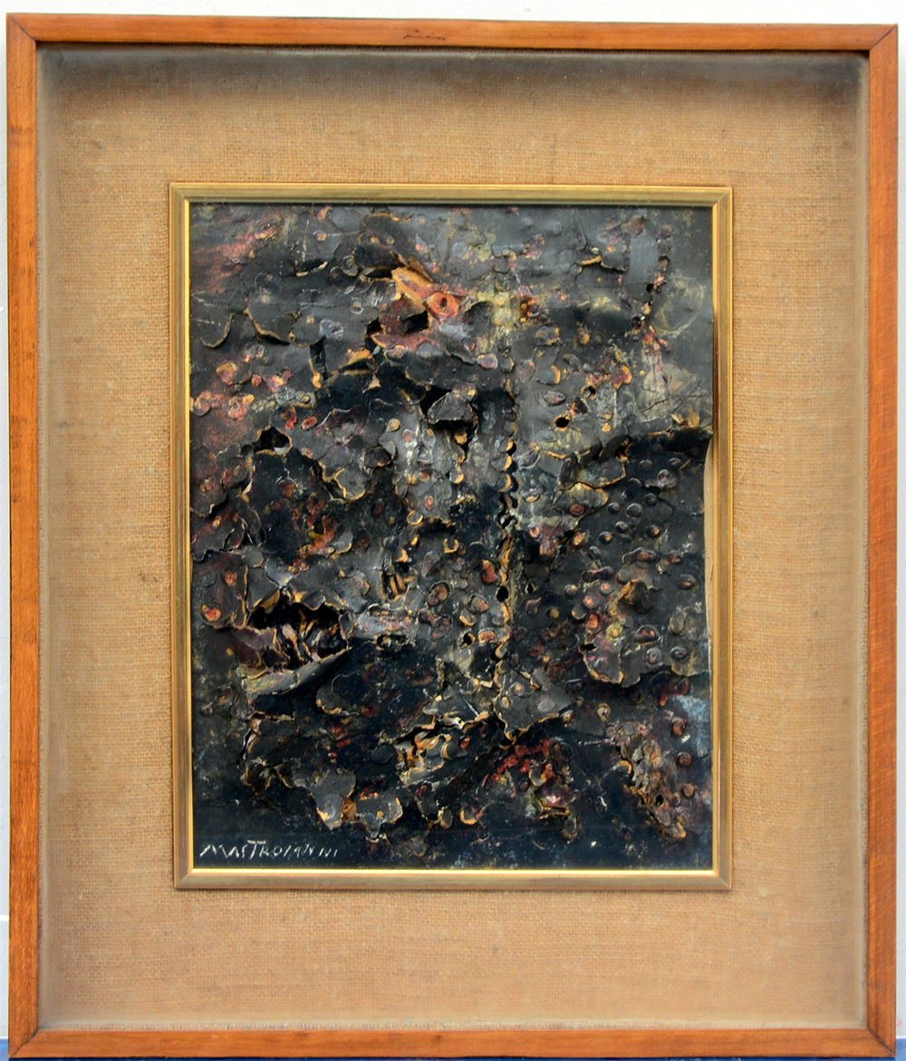 Mastroianni Umberto (Fontana Liri 1910 - Roma 1998) "Senza titolo" tecnica mista su cartone traforato(cm 40x31,5)firmato in basso a sinistra. Parere verbale di autenticità rilasciato dal Dott. Floriano De Santi. In cornice (lievi difetti)