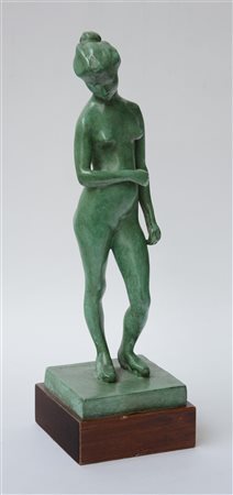 Francesco Messina (Linguaglossa 1900 - Milano 1995) "Ginevra" scultura-multiplo, patina verde su base in legno (h cm 40) es. 111/125. Firmato alla base. Edizione Istituto Seledi. Opera accompagnata da certificato di autenticità firmato dall'artista