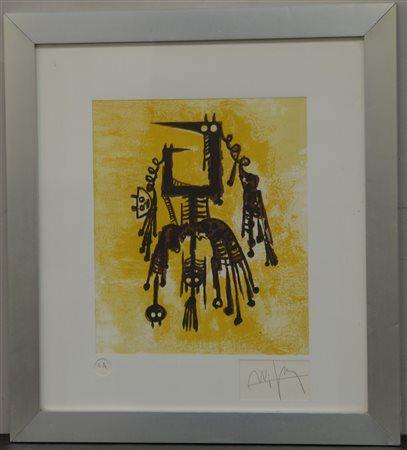 Wifredo Lam (Sagua La Grande 1902 - Parigi 1982) "Senza titolo" litografia policroma – prova d'artista (foglio cm 41x31) inscritta EA e firmata in basso a penna. In cornice.