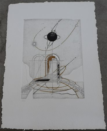 Walter Valentini (Pergola 1928) "Nava. Natale 1997" acquaforte e stampa a secco (impronta cm 40x29 foglio cm 64x46) numerata I/XXVII in basso in lapis, timbro a secco nel margine destro del foglio.