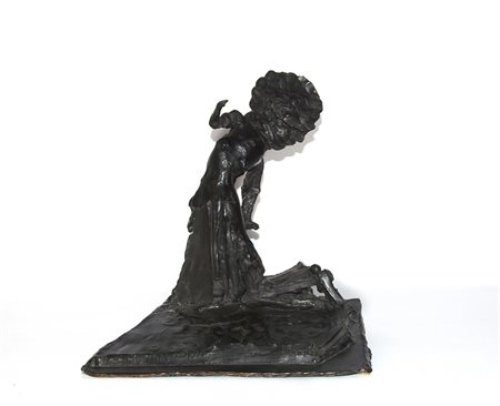 Augusto Perez (1929 - 2000) "L'equilibrista" 1987, scultura in bronzo (cm 43x40x31) esemplare 0/2, firmata e numerata in basso a destra (difetti) Opera accompagnata da certificato di autenticità su fotografia rilasciato dall'artista in data 16.9.1992