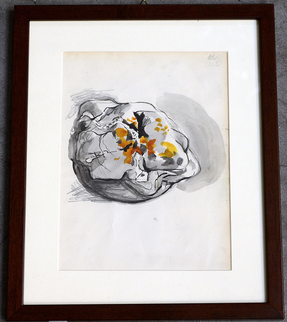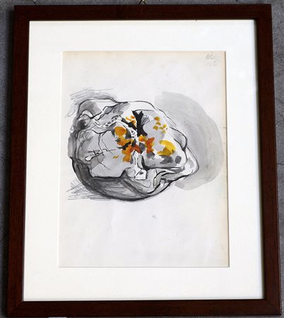 Graham Sutherland (Londra 1903 - 1980) "senza titolo" pagina di sketchbook, gouaches e tecnica mista su carta (cm 21x15,5). In cornice Opera accompagnata da certificato di autenticità su fotografia rilasciato dall'Archivio delle opere di Graham Sutherland della Galleria Ruggerini e Zonca, Milano (n. 316959 del 30/01/1993) e da certificato di autenticità su fotografia rilasciato della vedova Kathleen Sutherland il 4/08/1981.