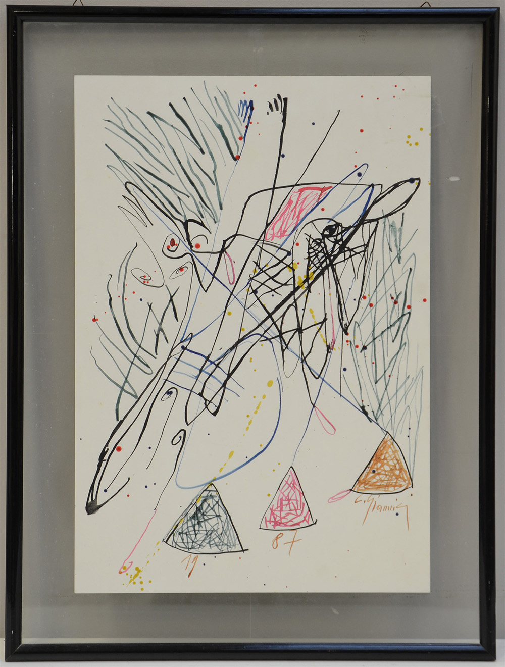 Gianni Celano Giannici (1941) "Senza titolo" 1987, tecnica mista su carta (cm 47,5x32,5) firmato e datato in basso a destra. In cornice