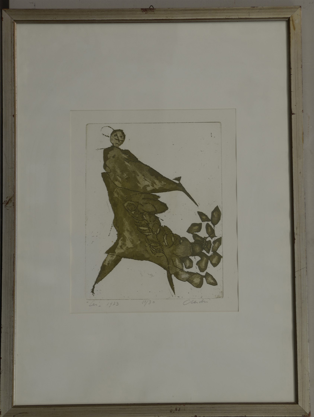 Sandro Cherchi (Genova 1911 - Torino 1998) "Lei" 1973, acquaforte e acquatinta (battuta cm 32x24). Titolata, datata, numerata 11/30 e firmata in basso a matita. Etichetta al retro della XXIV Mostra d'Arte Contemporanea Torre Pellice, 1973. In cornice