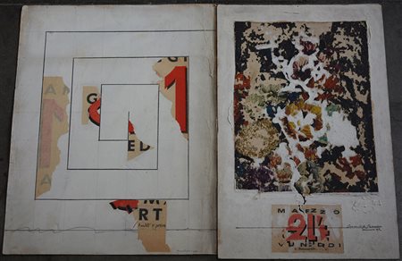 Felice Canonico (Messina 1922 - Milano 1996) "Senza titolo" due tecniche miste e collage su cartoncino, misure diverse. Firmati e datati in basso a destra (lievi difetti)