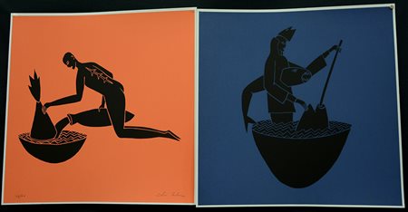 Oreste Zevola (1954) "La leggenda di Cola Pesce" cartella editoriale contenente quattro serigrafie numerate XX/XX e firmate in basso a matita, Il Laboratorio/ Le Edizioni Nola, 2002 (lievi difetti)