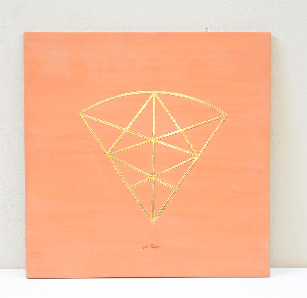 Lucio Del Pezzo (Napoli 1933) "Senza titolo" terracotta (60x60x2) firmata. Dedica autografa al retro datata luglio 2003.