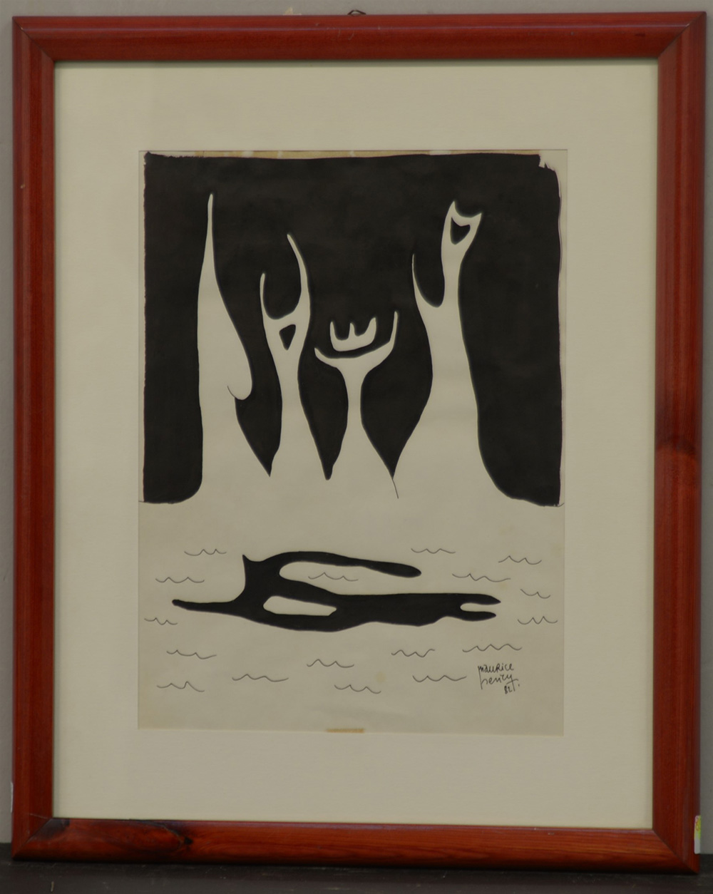 Maurice Henry (Cambrai 1907 - Milano 1984) "Senza titolo" 1982, tecnica mista su carta (cm 31,5x32,5) firmato e datato in basso a destra. In cornice (lievi difetti)