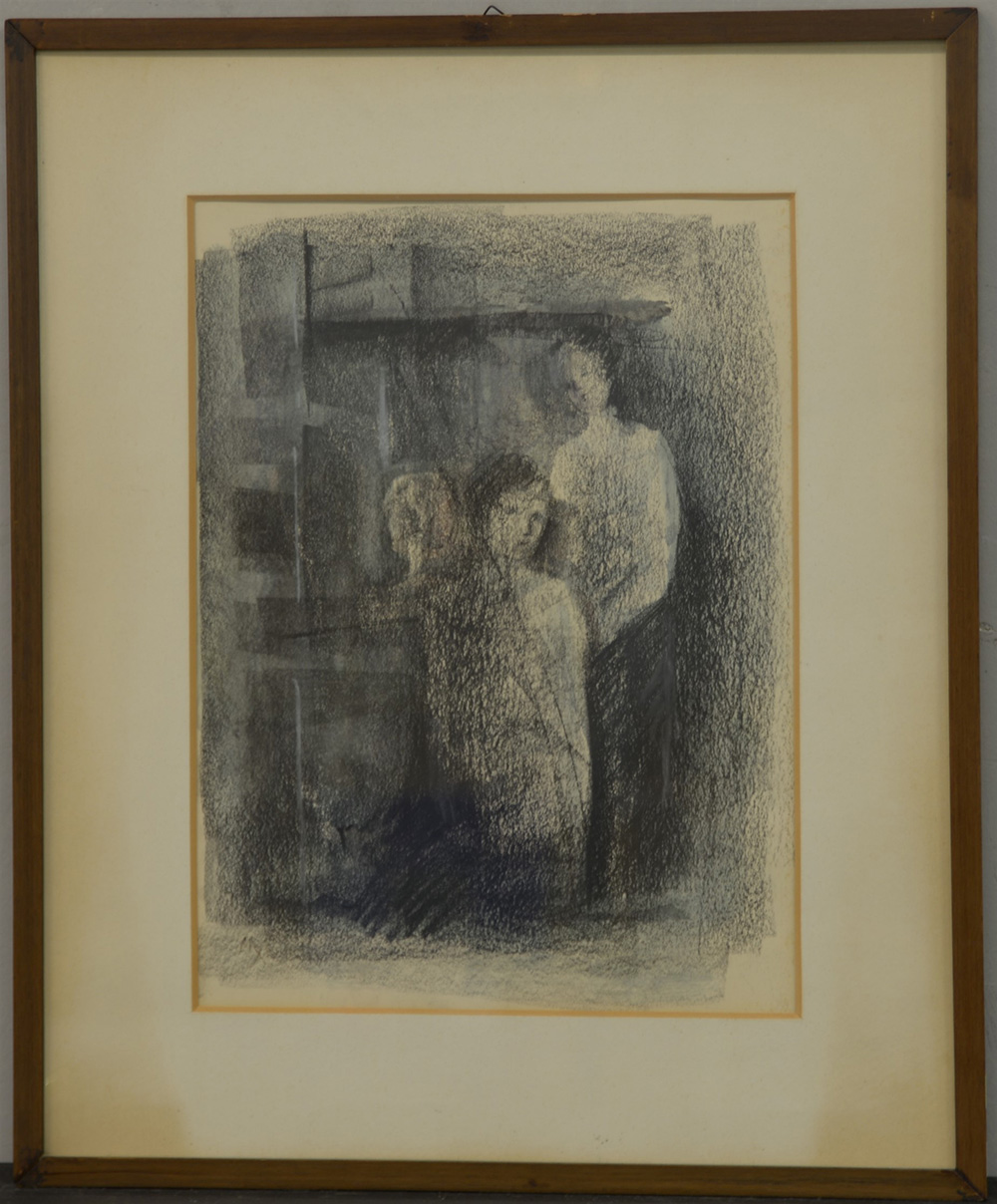 Max Kuatty (Canneto Sull'Oglio 1930 - Milano 2011) "Figure" tecnica mista (cm 40x30) firmato in basso a sinistra, in cornice (difetti)
