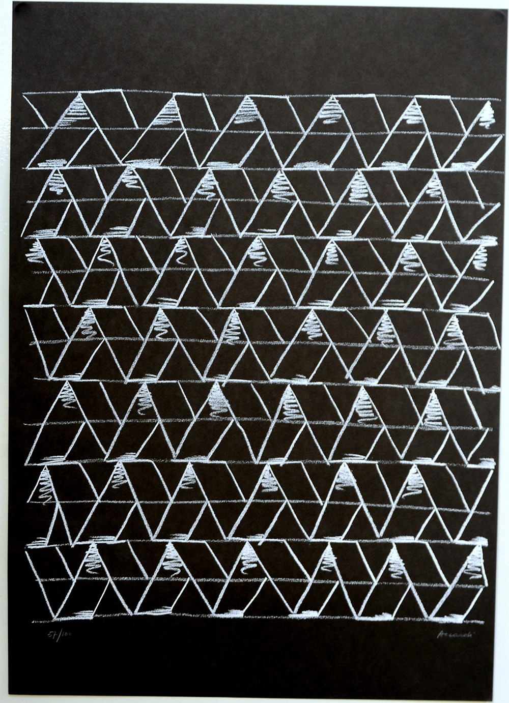 Carla Accardi (Trapani 1924 - Roma 2014) "Senza titolo" serigrafia su cartoncino nero (cm 48x68) numerata 57/100 e firmata in basso. Edizione Cooperarte, Padova, 1976-77.