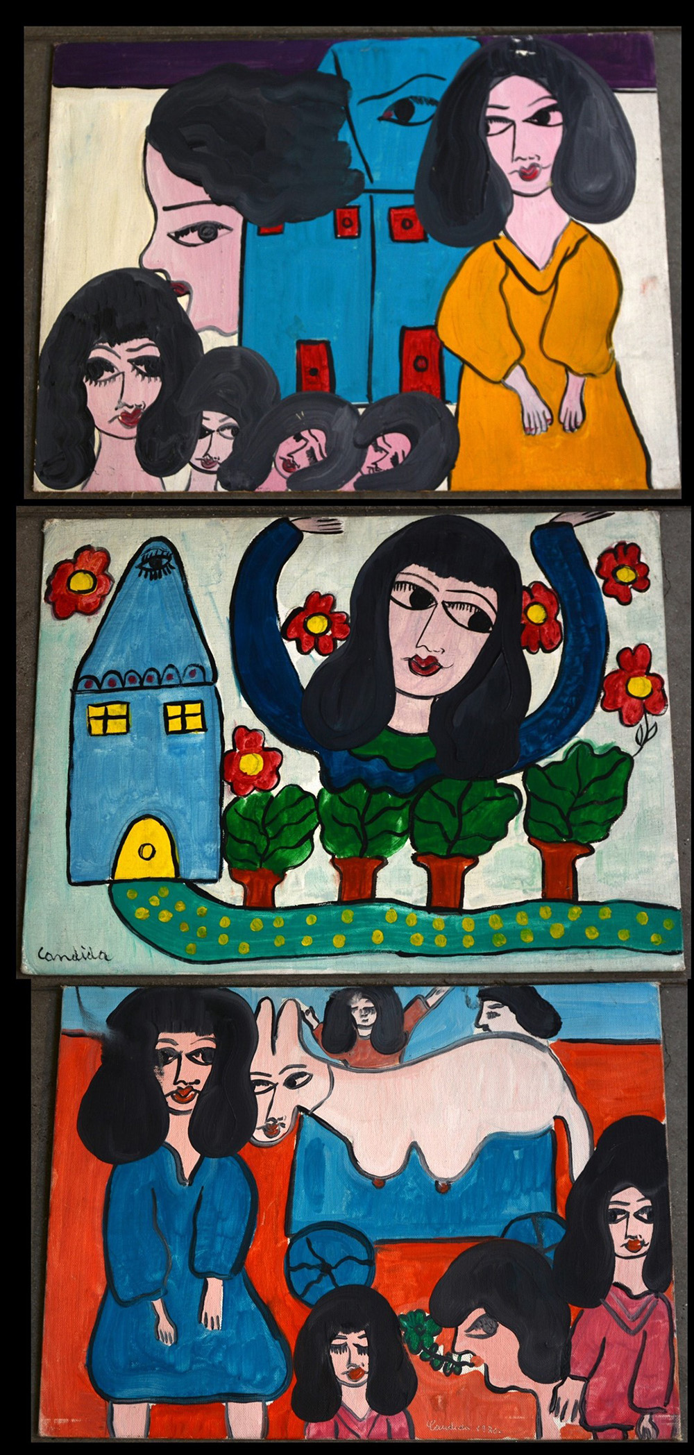 Candida Bissoni (Roncoferrato (MN) 1936) tre tecniche miste su cartone telato (cm 30x40). Due delle quali titolate, firmate e datate al retro (lievi difetti)