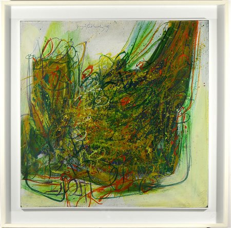 Giorgio Bellandi (Milano 1930 - Como 1976) "Caratteri popolari" 1959 tecnica mista su tela (cm 80x80) firmato e datato in alto al centro. Titolo e tracce di etichetta al retro (difetti)