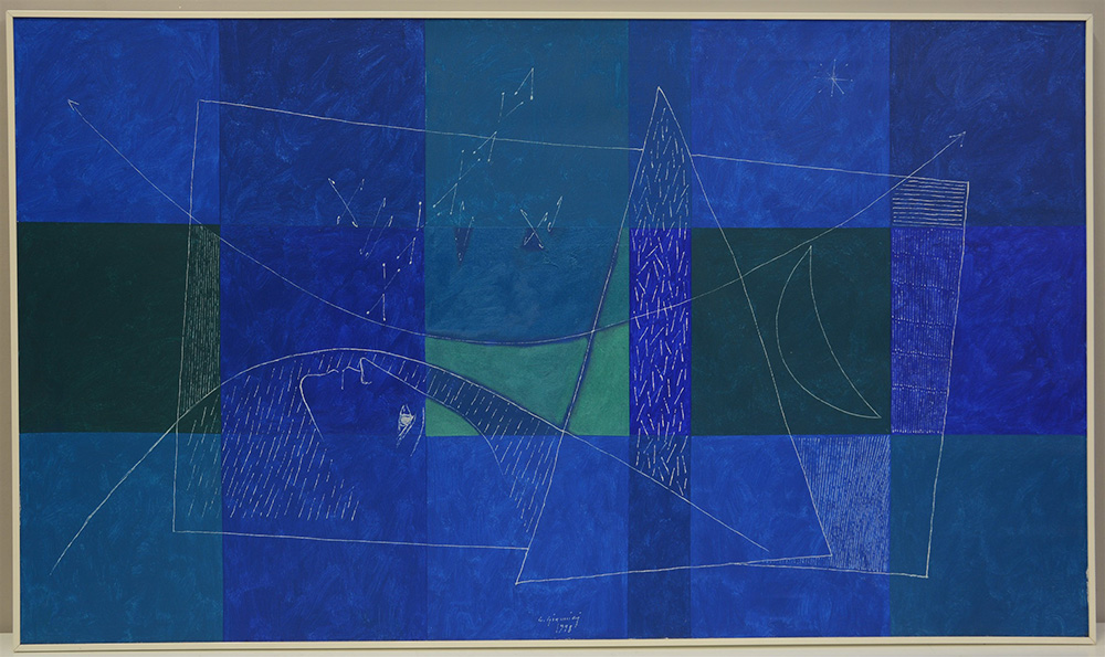 Gianni Celano Giannici (1941) "Il pasto dell'anima" 1998, tecnica mista su tela (cm 70x120) firmato e datato in basso al centro. Firmato, datato, titolato e inscritto al retro. In cornice