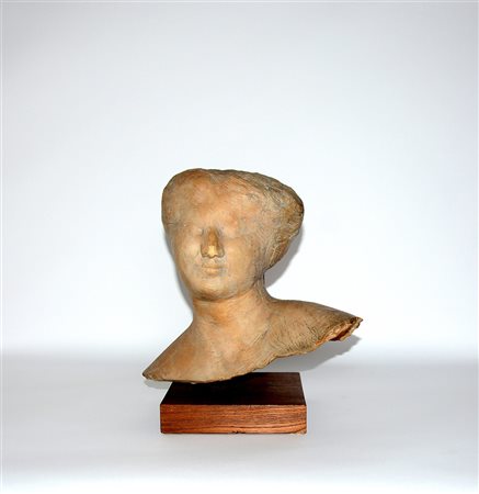Emilio Greco (1913 - 1995) "Testina" 1949 scultura in terracotta (cm 32x36) firmata e datata a destra, montata su base in legno (difetti) Opera accompagnata da certificato di autenticità rilasciato dall'artista nel 1989. Provenienza: Galleria Luigi Toninelli, Roma Galleria d'Arte Grafica Il Bisonte, Firenze Collezione privata