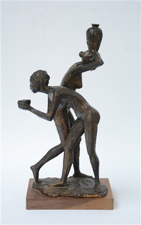 Pietro Zegna (Luino 1929) "Alla fonte" 1981, bronzo, fusione a cera persa (h cm 45) firmato alla base. Opera accompagnata da certificato di autenticità su fotografia rilasciato dall'artista il 30/09/2003.