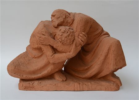 Pietro Zegna (Luino 1929) "Il Figliol Prodigo" 1993, scultura in terracotta (h cm 58) firmata alla base. Opera accompagnata da certificato di autenticità su fotografia firmato dall'artista.