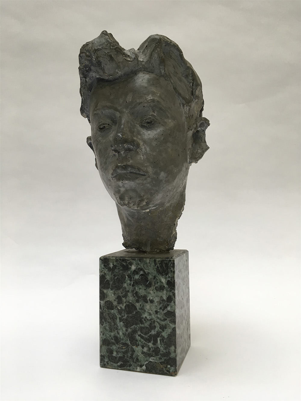 Lilan Tadini "Franco Cotter" scultura in pietra (h. cm 32) poggiante su base in marmo